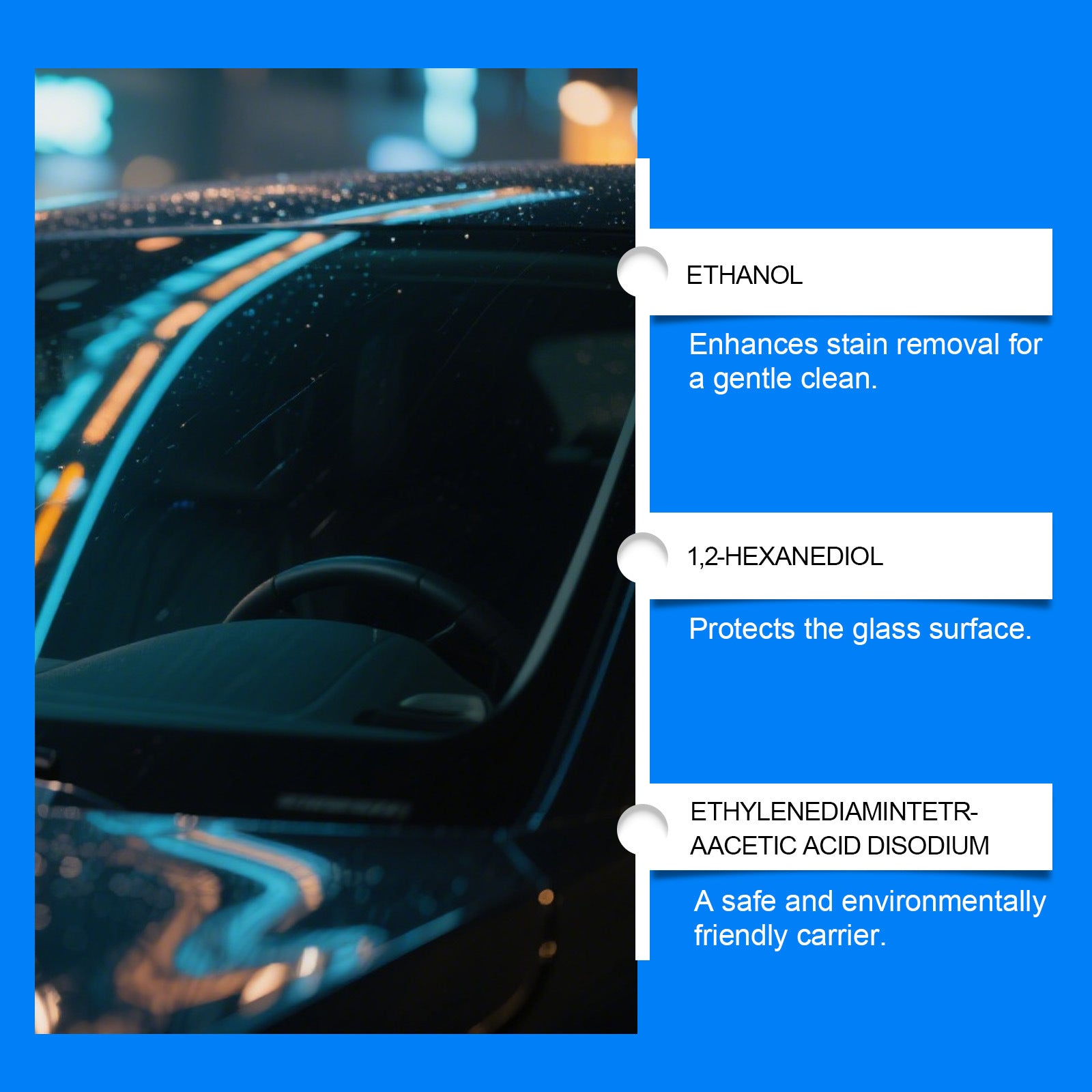 Ingredients: water, modified amino silicone oil polymer, ethanol, 1,2- hexanediol, disodium EDTA.